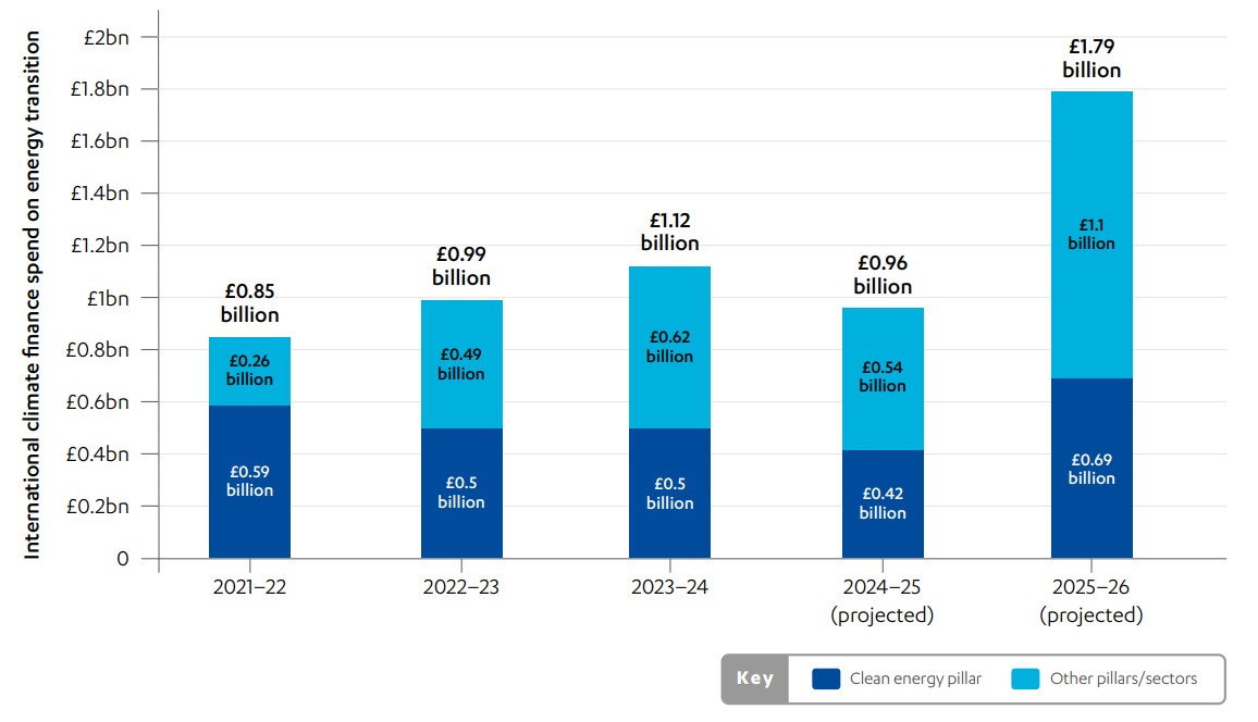 1.3 Successive UK governments have made clear their long-standing commitment to energy transition both domestically and globally. The International Climate Finance (ICF) Strategy, which governs the use of the UK’s £11.6 billion pledge for climate-related aid, has clean energy (a key dimension of energy transition see Box 22) as one of its key pillars.