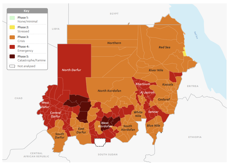 2.3 Inside Sudan, over 30 million people – nearly two-thirds of Sudan’s population – now require humanitarian assistance, including 16 million children.9 Women and girls are particularly vulnerable, facing heightened risks of gender-based violence, including conflict-related sexual violence. Famine conditions are confirmed in multiple locations, with 8.1 million people facing emergency food insecurity and more than 600,000 at risk of starvation.10 Health systems have collapsed in many areas, with rising deaths from disease outbreaks such as cholera and measles.11 Humanitarian access in Sudan is extremely limited, relying heavily on local networks, with few international actors able to operate across complex and rapidly shifting frontlines.