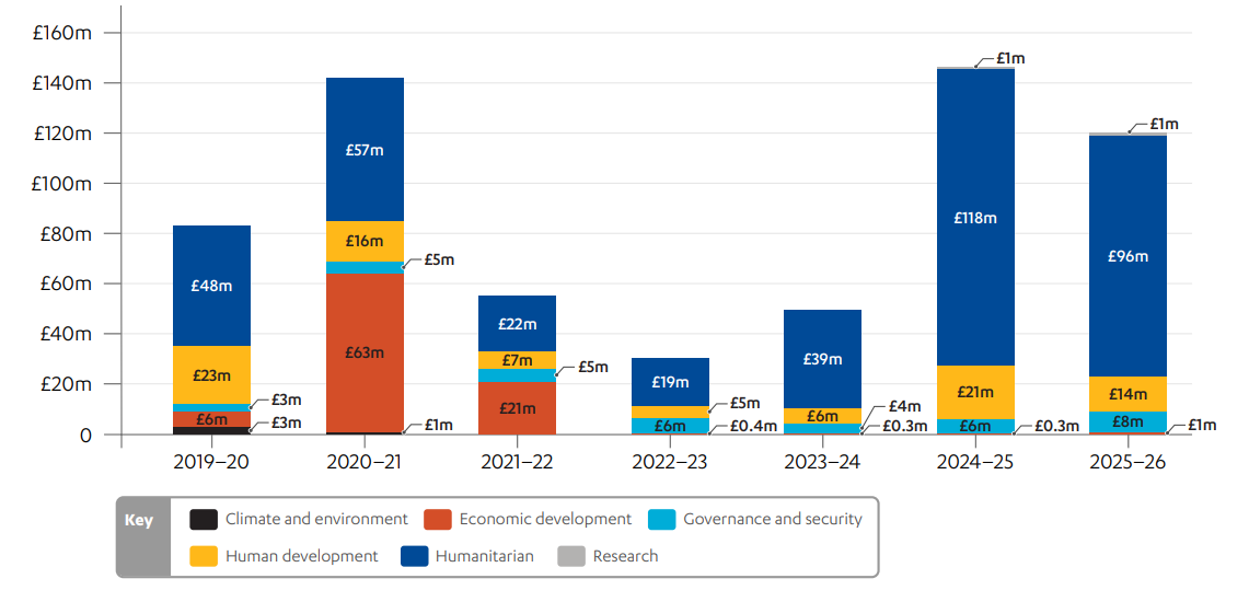 Source: Foreign, Commonwealth and Development Office, ‘Sudan spend 2019–2025’, September 2025, unpublished