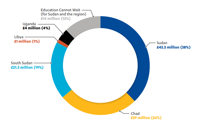 By November 2024, the UK pledged an additional £113 million to the Sudan crisis, bringing its total commitment to £226.5 million for the 2024–25 period. This made the UK the fourth-largest donor to the Sudan crisis, including the response in Sudan and for Sudanese seeking refuge in neighbouring countries. This commitment was exceeded by £4.8 million, bringing the UK’s total spending on the Sudan response to £231.3 million for the 2024–25 financial year.